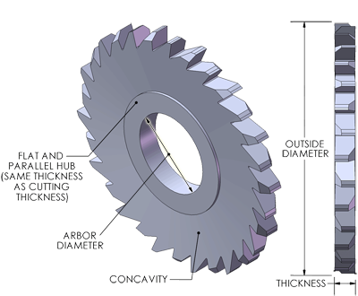 2.5-in Diam. Slitting Saw, 0.025-in Thick, 1-in ID, 56 teeth Alternate Tooth Chamfer, Double Concavity, 1.500-in Hub
