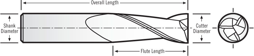 0.0937-in Dia 3-Flute End Mill, 0.375-in LOC, 0.125-in Shank, 1.5-in OAL